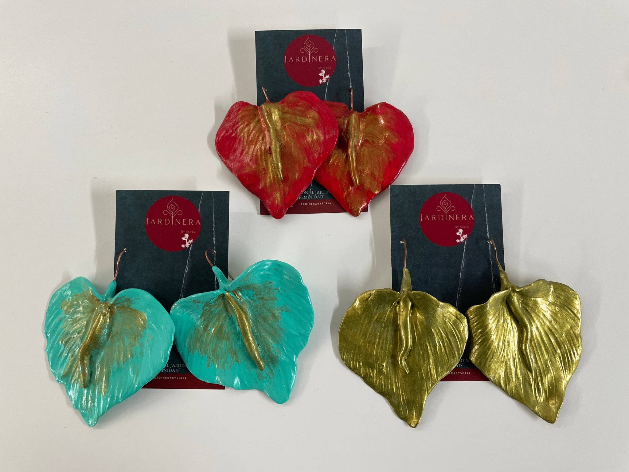 Estas hermosas pantallas con forma de anturio están elaboradas en barro sintético y cuentan con ganchos de cobre, un material conocido por sus propiedades antiinflamatorias y antibacteriales. Disponibles en una variedad de colores vibrantes, cada pieza es una expresión de creatividad artesanal.