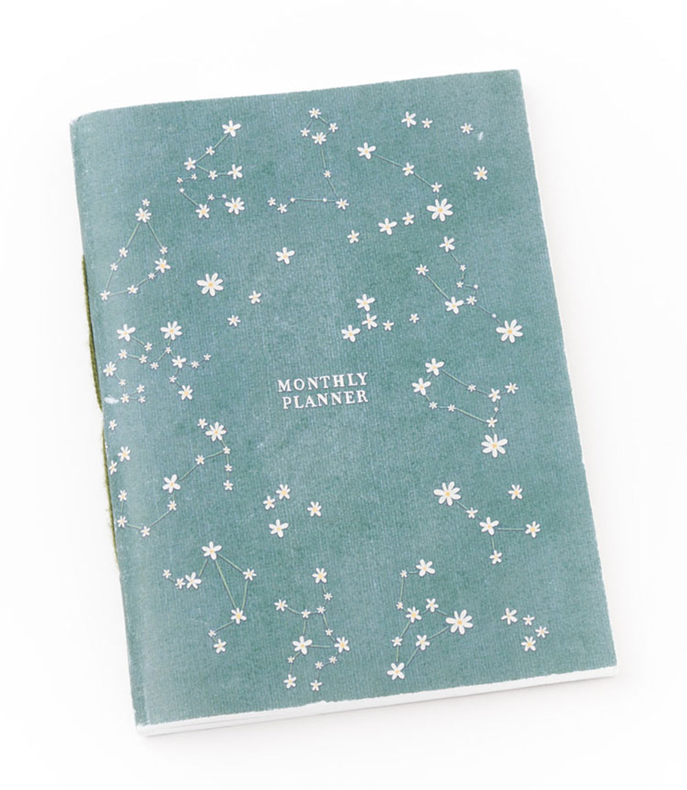Sustainably handcrafted by artisan makers who collect and upcycle discarded cotton scraps to make 100% tree free paper, this eco-friendly calendar planner contains areas to plan months and days of the week, to-do pages and plenty of blank note space. There are no dates so that it can be used from year to year! Features a unique celestial, zodiac constellation, made up of flowers.